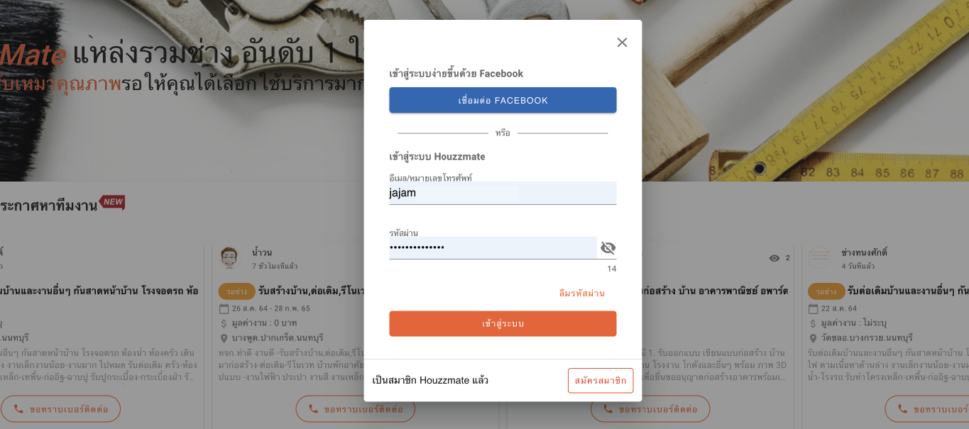 วิธีการเข้าสู่ระบบ Login เข้าใช้เว็บไซต์ HouzzMate.com ด้วยอีเมล์ E-mail และ หมายเลขโทรศัพท์ {บนมือถือ}