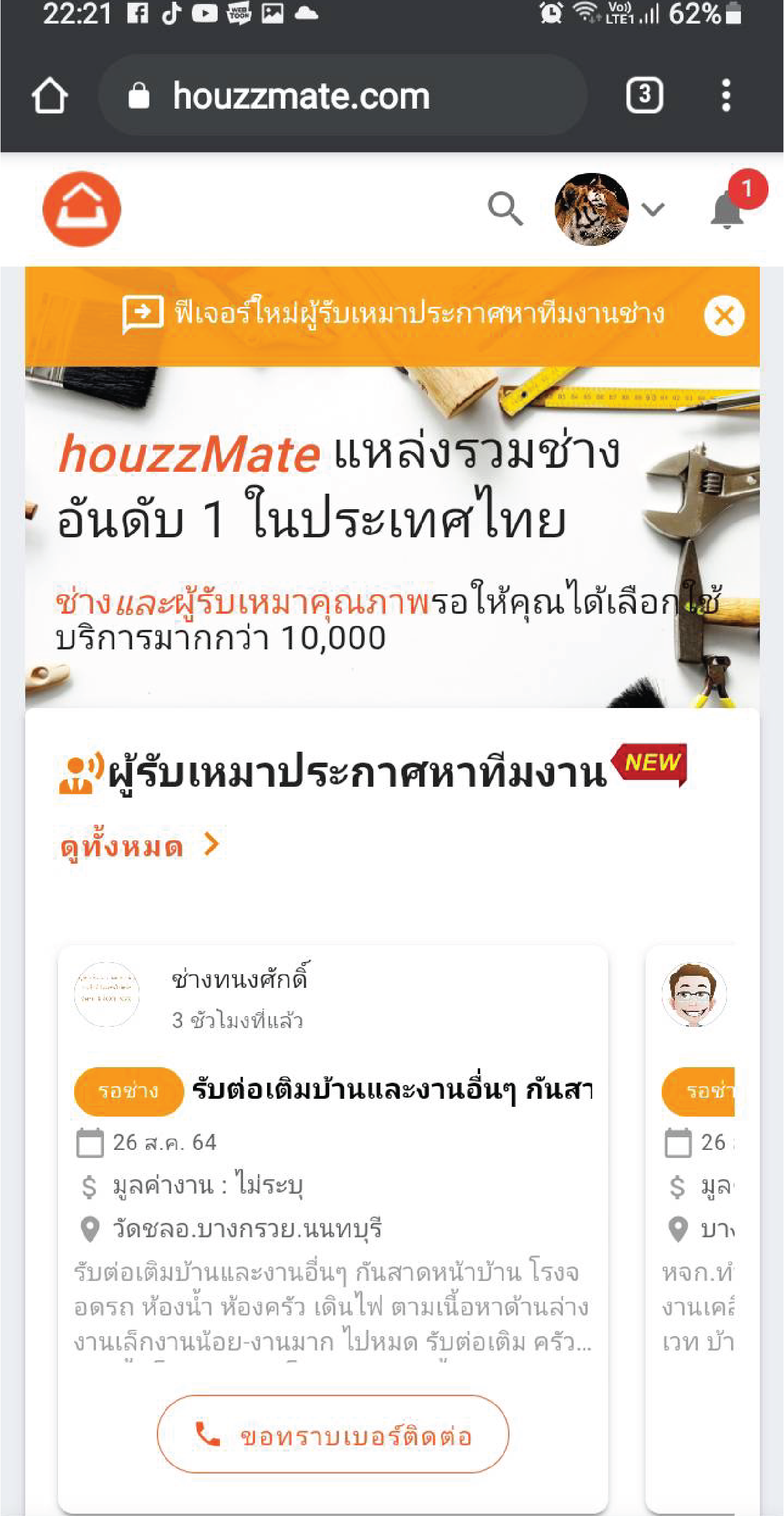 เพียงเท่านี้ท่านก็เข้าสู่ระบบและใช้งานเว็บไซต์ HouzzMate ได้แล้ว