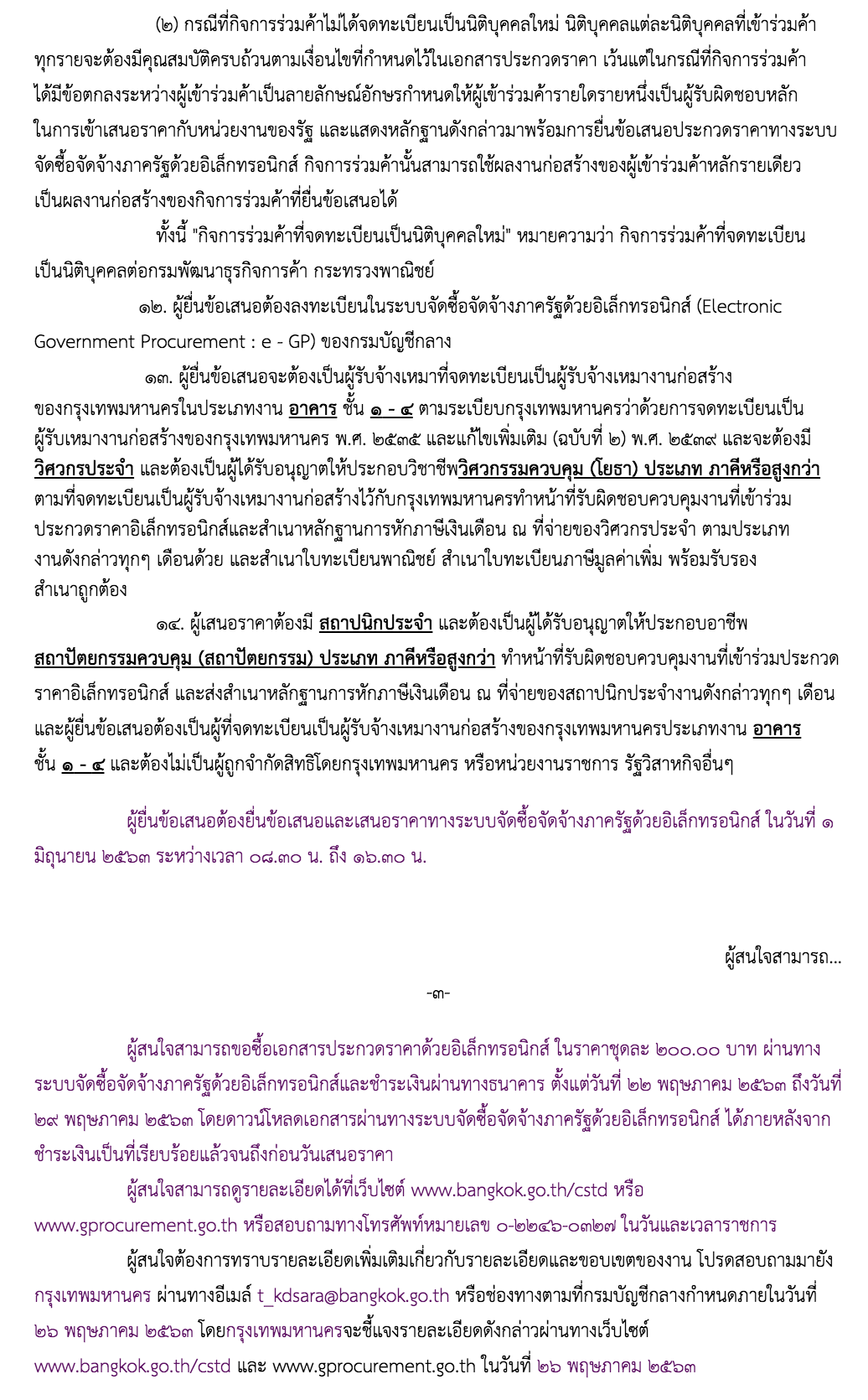 ผู้สนใจสามารถดูรายละเอียดได้ที่เว็บไซต์ www.bangkok.go.th/cstd หรือ www.gprocurement.go.th หรือสอบถามทางโทรศัพท์หมายเลข ๐-๒๒๔๖-๐๓๒๗ ในวันและเวลาราชการ