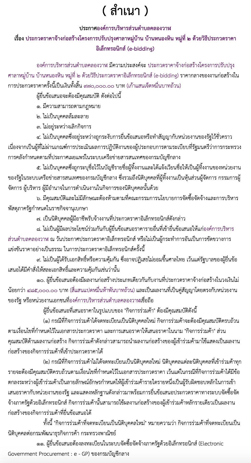 ที่มาของประกาศจัดซื้อจัดจ้าง : https://process3.gprocurement.go.th/