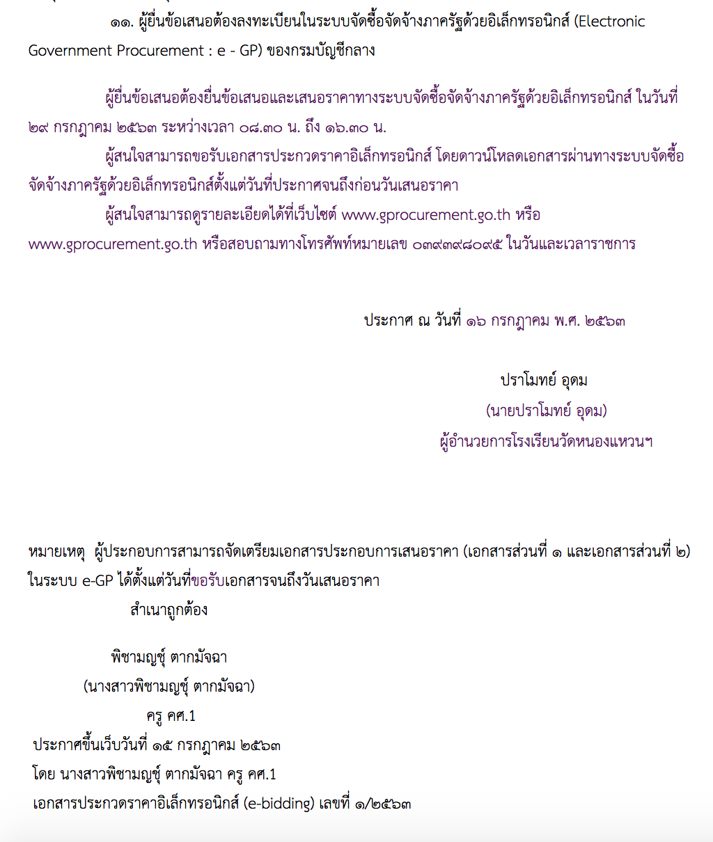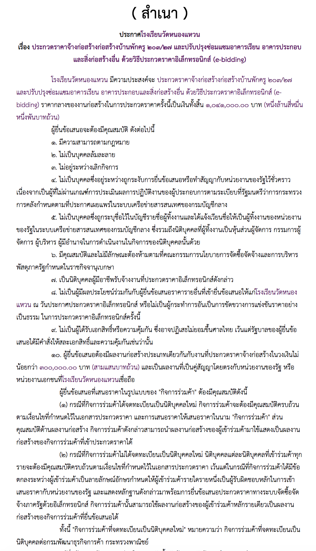 ประกาศโรงเรียนวัดหนองแหวน จันทบุรี ประกวดราคาจ้างก่อสร้างก่อสร้างบ้านพักครู ๒๐๓/๒๗ และปรับปรุงซ่อมแซมอาคารเรียน อาคารประกอบและสิ่งก่อสร้างอื่น ด้วยวิธีประกวดราคาอิเล็กทรอนิกส์ (e-bidding)