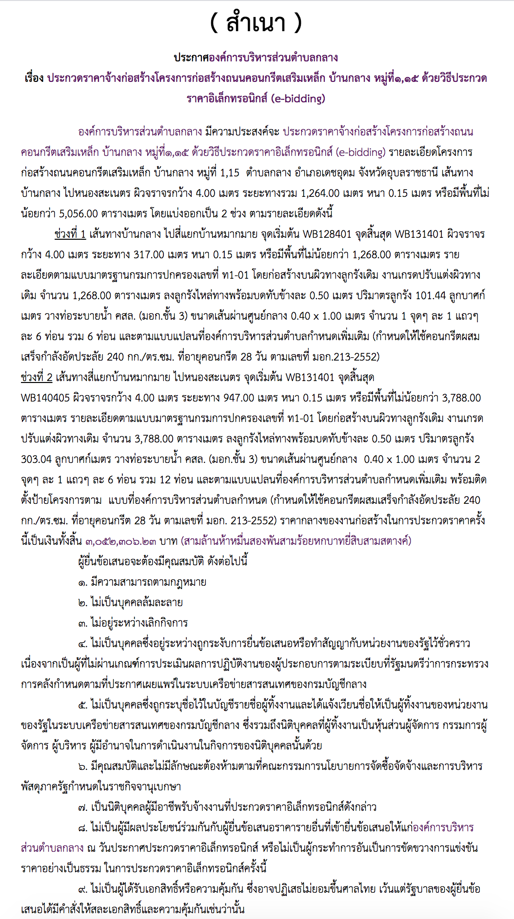 ประกาศองค์การบริหารส่วนตำบลกลาง เรื่อง ประกวดราคาจ้างก่อสร้างโครงการก่อสร้างถนนคอนกรีตเสริมเหล็ก บ้านกลาง หมู่ที่๑,๑๕ ด้วยวิธีประกวดราคาอิเล็กทรอนิกส์ (e-bidding)