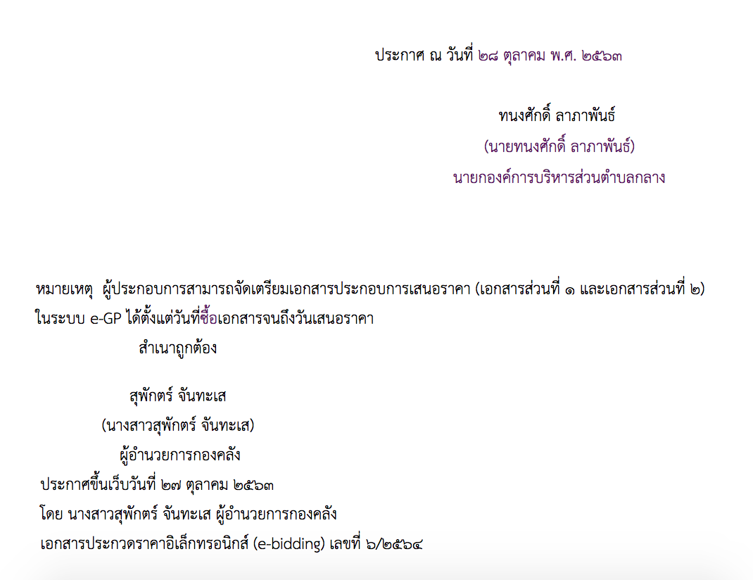 กำหนดยื่นข้อเสนอและเสนอราคา - ยื่นข้อเสนอและเสนอราคาทางระบบจัดซื้อจัดจ้างภาครัฐด้วยอิเล็กทรอนิกส์ ในวันที่ 5 พฤศจิกายน 2563 ระหว่างเวลา 8.30 น. ถึง 16.30