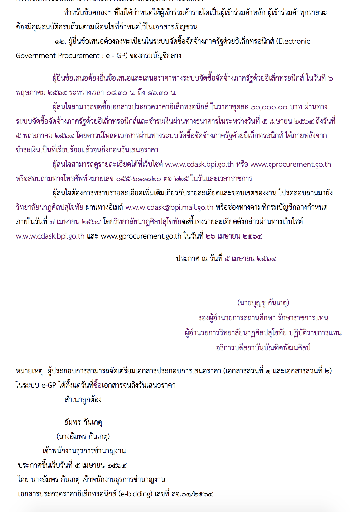 ผู้สนใจสามารถดูรายละเอียดได้ที่เว็บไซต์ w.w.w.cdask.bpi.go.th หรือ www.gprocurement.go.th หรือสอบถามทางโทรศัพท์หมายเลข ๐๕๕-๖๑๑๘๒๐ ต่อ ๒๒๕ ในวันและเวลาราชการ