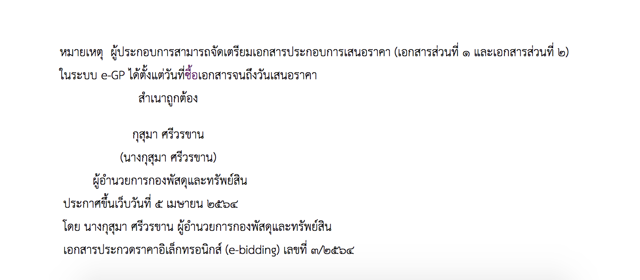 กำหนดยื่นข้อเสนอและเสนอราคา - ยื่นข้อเสนอและเสนอราคาทางระบบจัดซื้อจัดจ้างภาครัฐด้วยอิเล็กทรอนิกส์ ในวันที่ 20 เมษายน 2564 ระหว่างเวลา 8.30 น. ถึง 16.30 น.