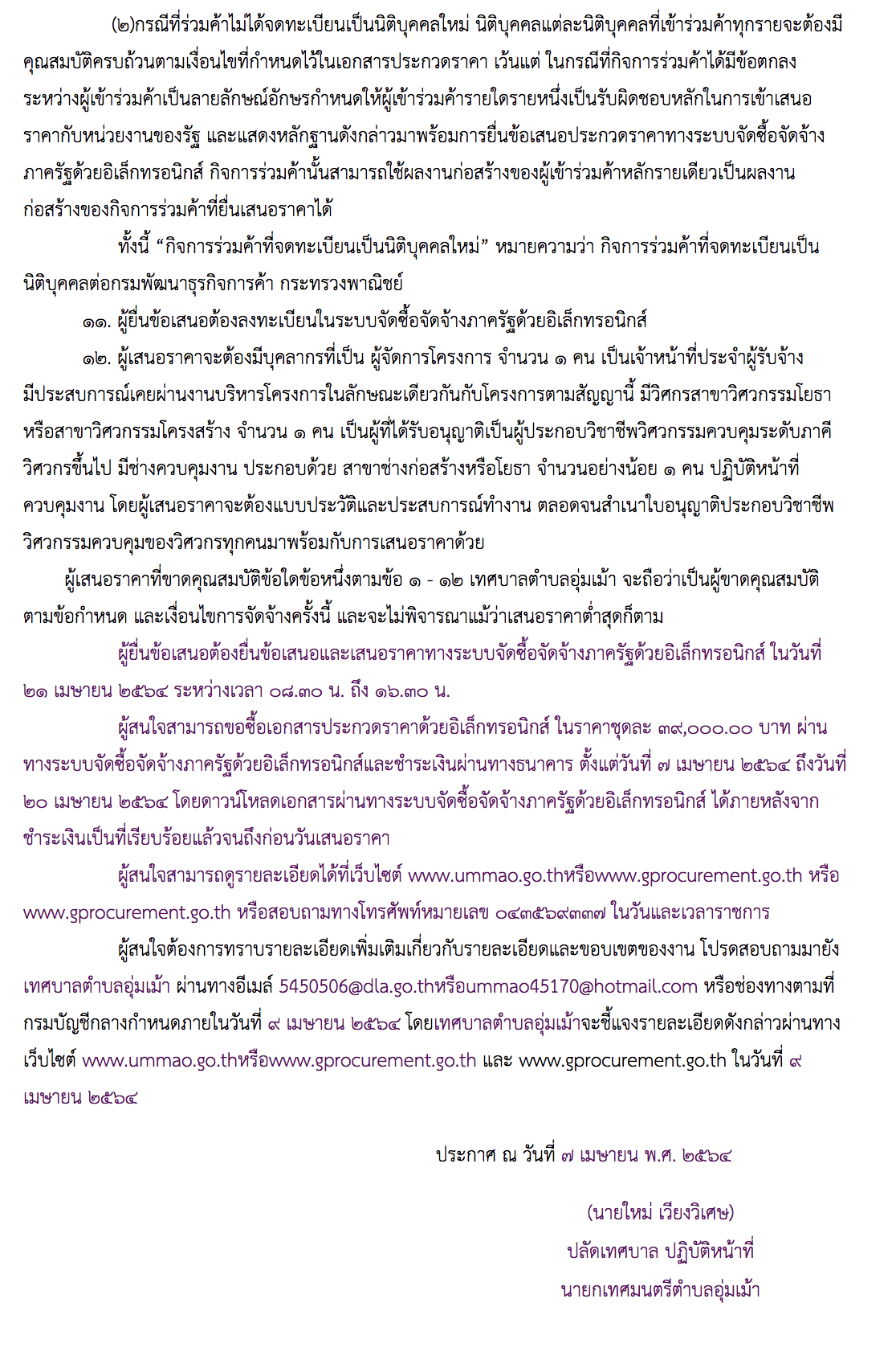 ผู้สนใจสามารถดูรายละเอียดได้ที่เว็บไซต์ www.ummao.go.thหรือwww.gprocurement.go.th หรือ www.gprocurement.go.th หรือสอบถามทางโทรศัพท์หมายเลข ๐๔๓๕๖๙๓๓๗ ในวันและเวลาราชการ