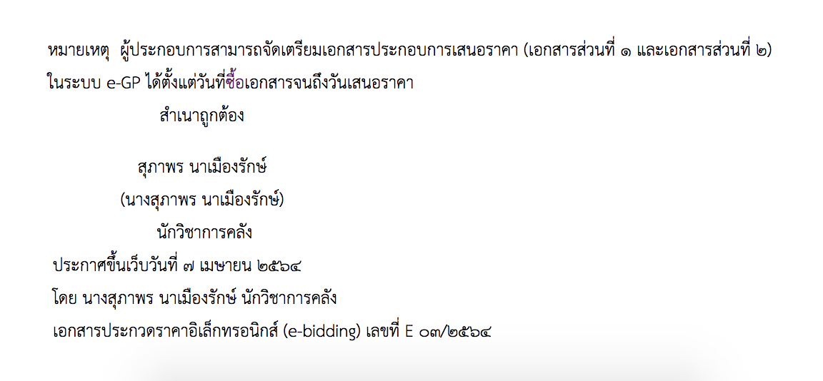 กำหนดยื่นข้อเสนอและเสนอราคา - ยื่นข้อเสนอและเสนอราคาทางระบบจัดซื้อจัดจ้างภาครัฐด้วยอิเล็กทรอนิกส์ ในวันที่ 21 เมษายน 2564 ระหว่างเวลา 8.30 น. ถึง 16.30 น.