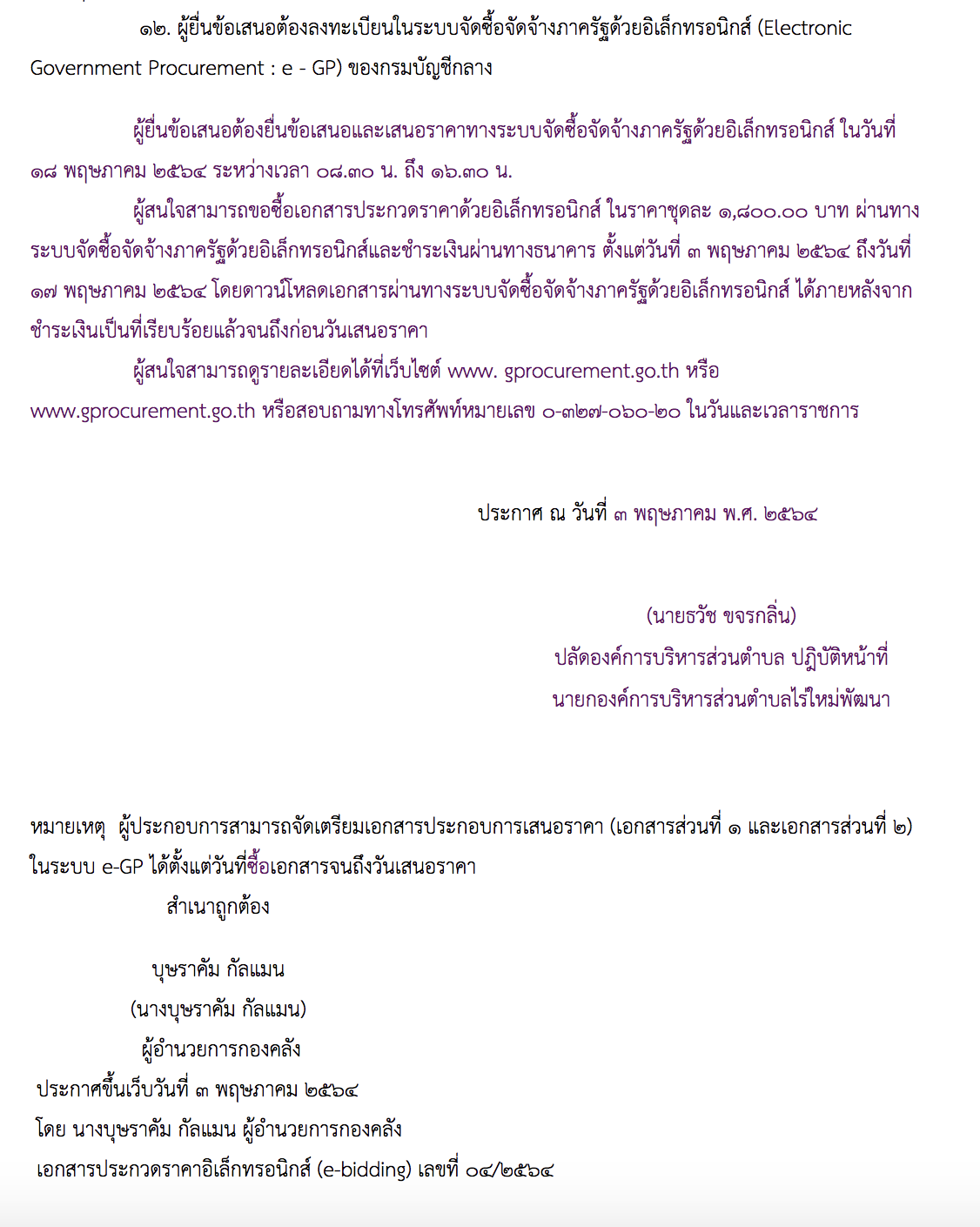 กำหนดยื่นข้อเสนอและเสนอราคา - ยื่นข้อเสนอและเสนอราคาทางระบบจัดซื้อจัดจ้างภาครัฐด้วยอิเล็กทรอนิกส์ ในวันที่ 18 พฤษภาคม 2564 ระหว่างเวลา 8.30 น. ถึง 16.30 น.