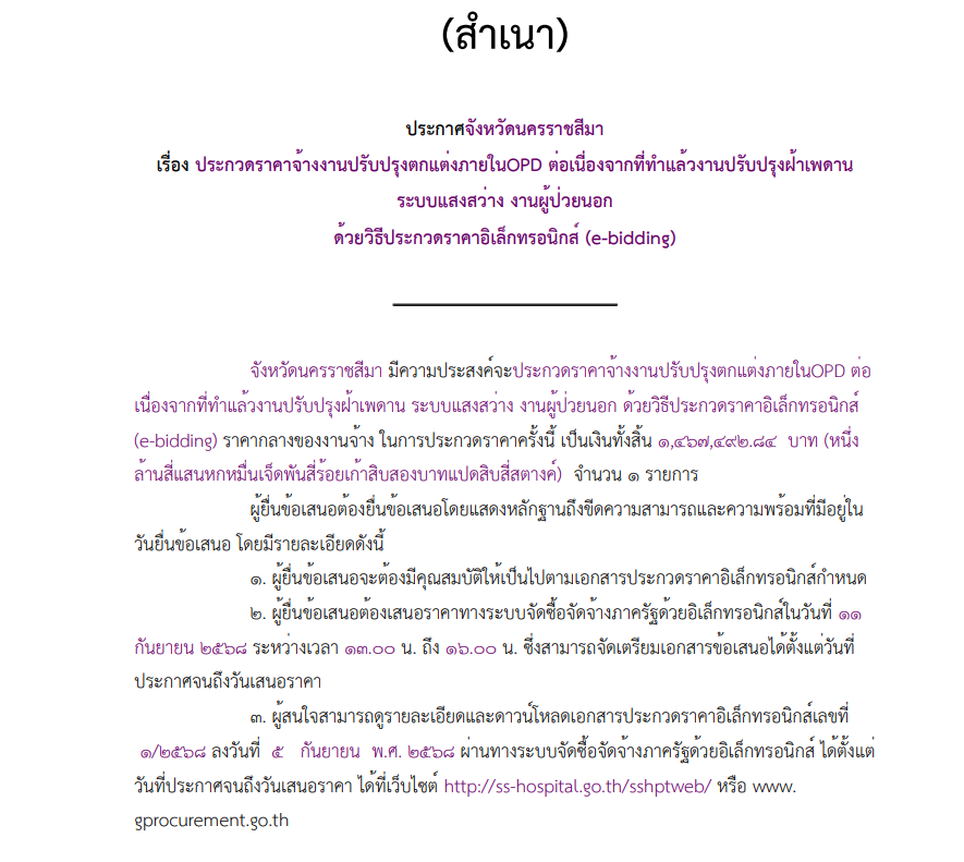 เรื่อง ประกวดราคาจ้างงานปรับปรุงตกแต่งภายในOPD ต่อเนื่องจากที่ทำแล้วงานปรับปรุงฝ้าเพดาน ระบบแสงสว่าง งานผู้ป่วยนอก ด้วยวิธีประกวดราคาอิเล็กทรอนิกส์ (e-bidding)