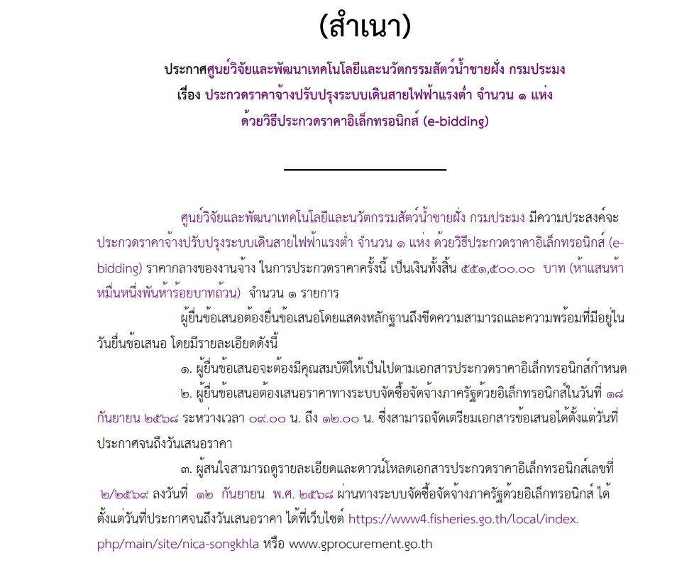 เรื่อง ประกวดราคาจ้างปรับปรุงระบบเดินสายไฟฟ้าแรงต่ำ จำนวน ๑ แห่ง ด้วยวิธีประกวดราคาอิเล็กทรอนิกส์ (e-bidding)