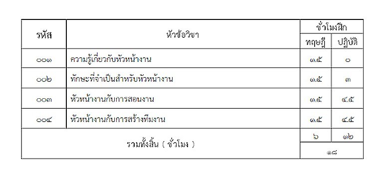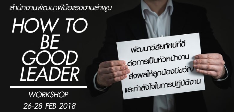 เปิดรับสมัครแรงงานในสถานประกอบกิจการและบุคคลทั่วไปเข้ารับการฝึกอาชีพหลักสูตรยกระดับฝีมือแรงงาน ประจำปีงบประมาณ พ.ศ.2561 ตามโครงการเพิ่มศักยภาพแรงงานรองรับ Thailand 4.0 กิจกรรม เพิ่มศักยภาพกำลังแรงงานภาคอุตสาหกรรมและบริการไปสู่ Thailand 4.0 ท่องเที่ยว/บริการ บริการด้านสุขภาพ กลุ่มอุตสาหกรรมสร้างสรรค์/วัฒนธรรม ในสาขา “การพัฒนาหัวหน้างานระดับต้น จำนวน 18 ชั่วโมง อบรมในระหว่างวันที่ 26 - 28 กุมภาพันธ์ 2561