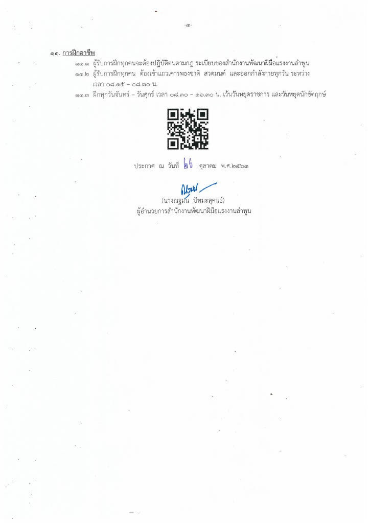 วันประกาศผลการสอบคัดเลือก วันที่ 20 พฤศจิกายน 2563 ณ สำนักงานพัฒนาฝีมือแรงงานลำพูน