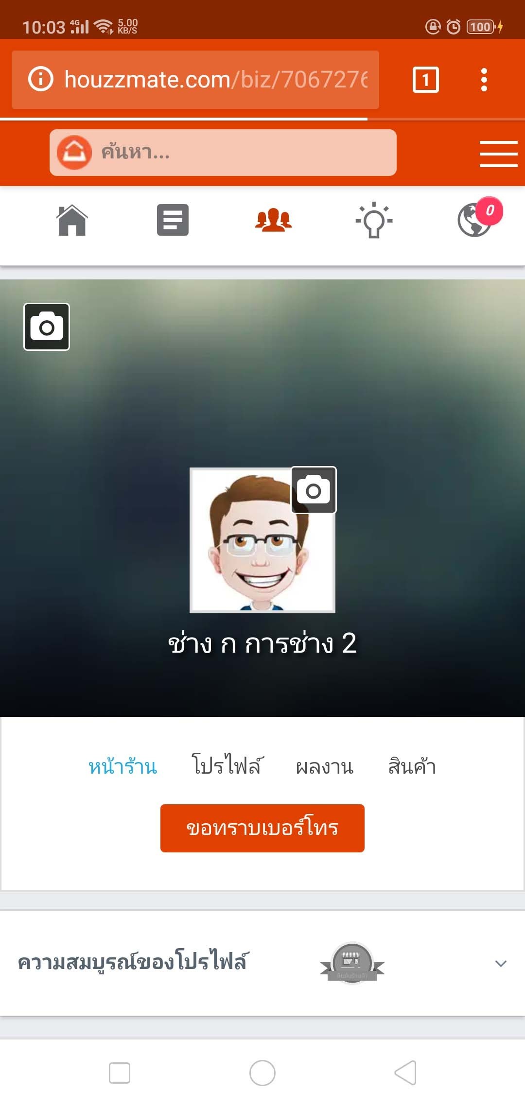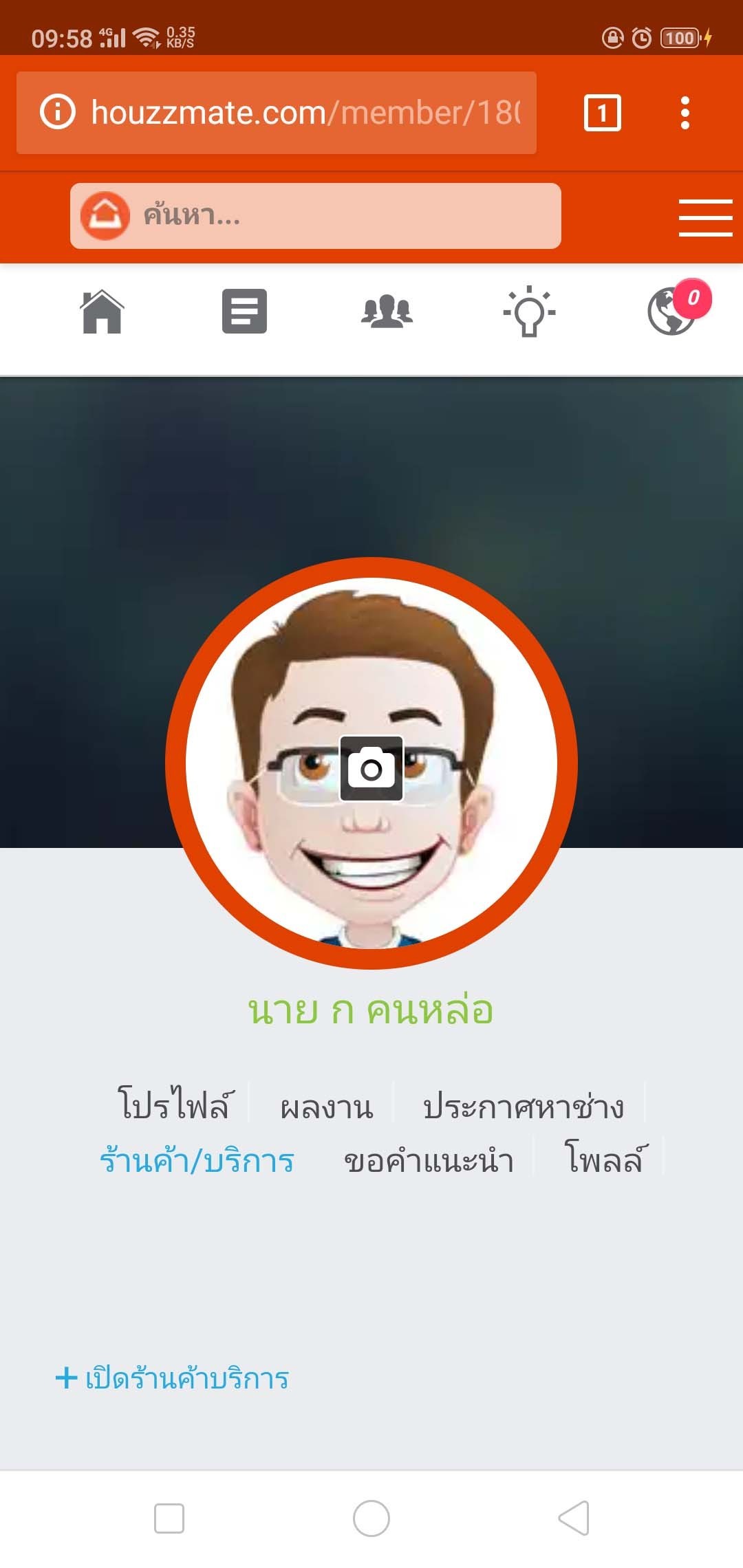 7.) หลังจากกรอกข้อมูลและยอมรับเงื่อนไขการเปิดร้านค้าแล้ว จะเข้าสู่หน้าร้านค้าของท่านที่ได้สร้างเมื่อสักครู่ เพียงเท่านี้การเปิดร้านค้า/บริการได้เสร็จสิ้น ท่านสามารถที่จะดูเบอร์โทรศัพท์ติดต่อช่างท่านอื่นๆ ลงข้อมูลรายละเอียดเกี่ยวกับการให้บริการของท่านที่เป็นช่างหรือร้านค้า และสามารถประกาศขายสินค้าภายในเว็บไซต์ HouzzMate.com ได้แล้ว