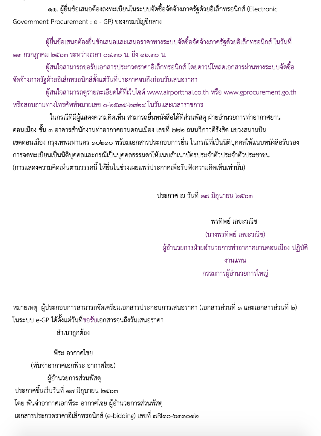 ผู้สนใจสามารถดูรายละเอียดได้ที่เว็บไซต์ www.airportthai.co.th หรือ www.gprocurement.go.th หรือสอบถามทางโทรศัพท์หมายเลข ๐-๒๕๓๕-๒๓๒๔ ในวันและเวลาราชการ