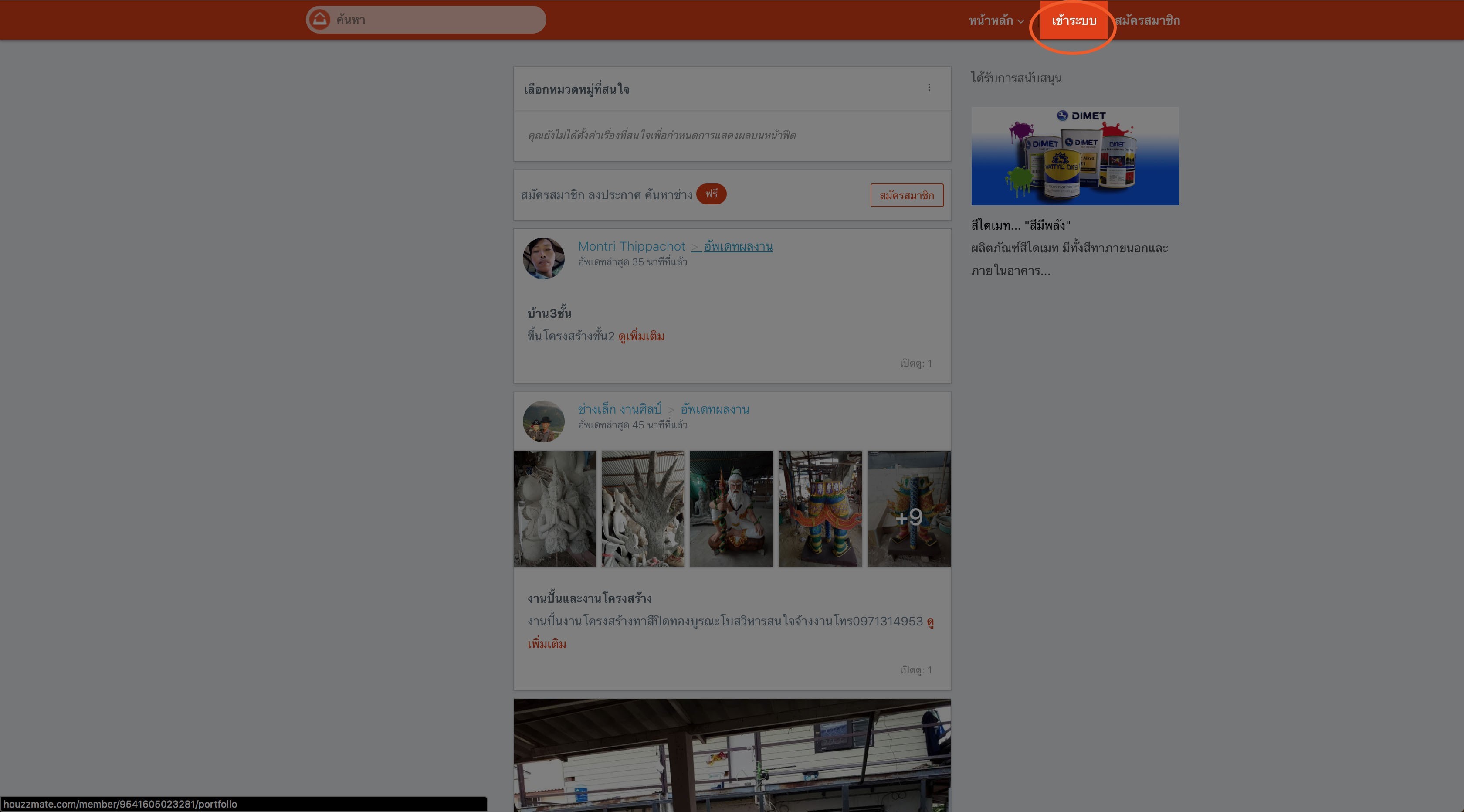 เพียงเท่านี้ท่านก็เข้าสู่ระบบและใช้งานเว็บไซต์ HouzzMate ได้แล้ว