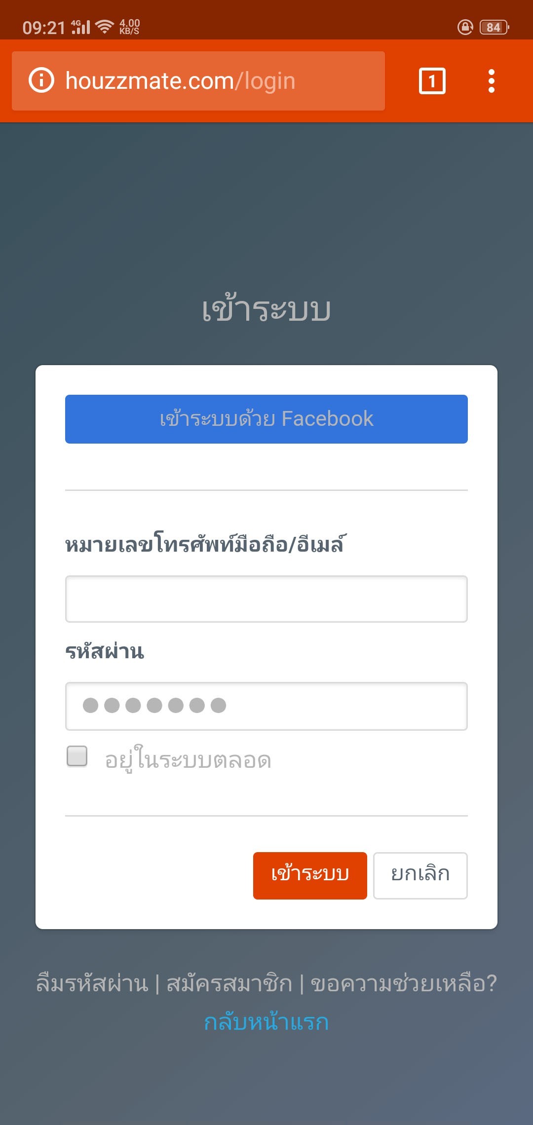 วิธีการเข้าสู่ระบบ Login เข้าใช้เว็บไซต์ HouzzMate.com ด้วยอีเมล์ E-mail และ หมายเลขโทรศัพท์ {บนระบบคอมพิวเตอร์/เดสก์ท็อป}