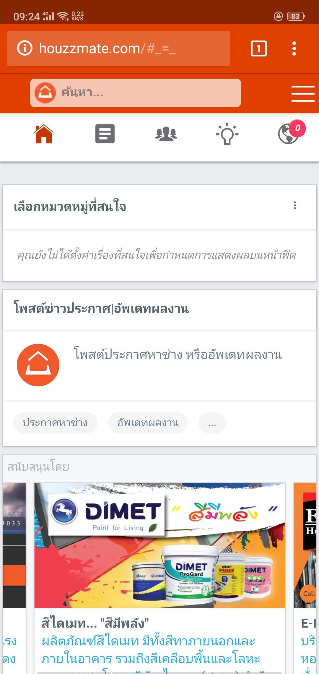 4.) ท่านจะเข้ามาสู่หนัาหลักของ HouzzMate พร้อมกับสถานะการเป็นสมาชิกของท่านเว็บไซต์
